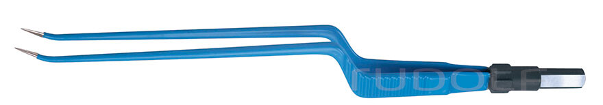 Pinza Bipolar Estándar, Bayoneta, Angulada Hacia Adelante, Conector Plano 1 mm, 20 cm