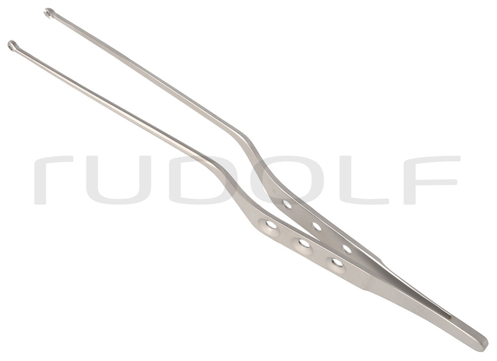 Micropinza Yasargil Agarratumores, Mango Perforado En Bayoneta Ø 5 mm, 22 cm, Terminal Dentado