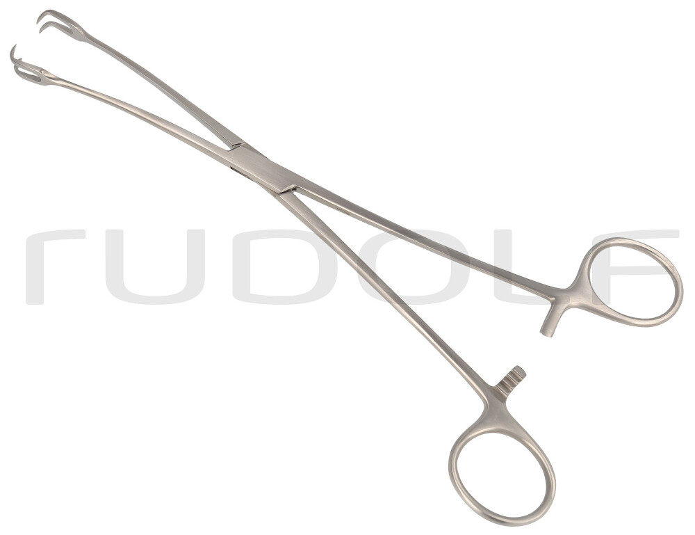 Tenáculo Uterino Schröder, Curvo, 2x2D. 24 cm